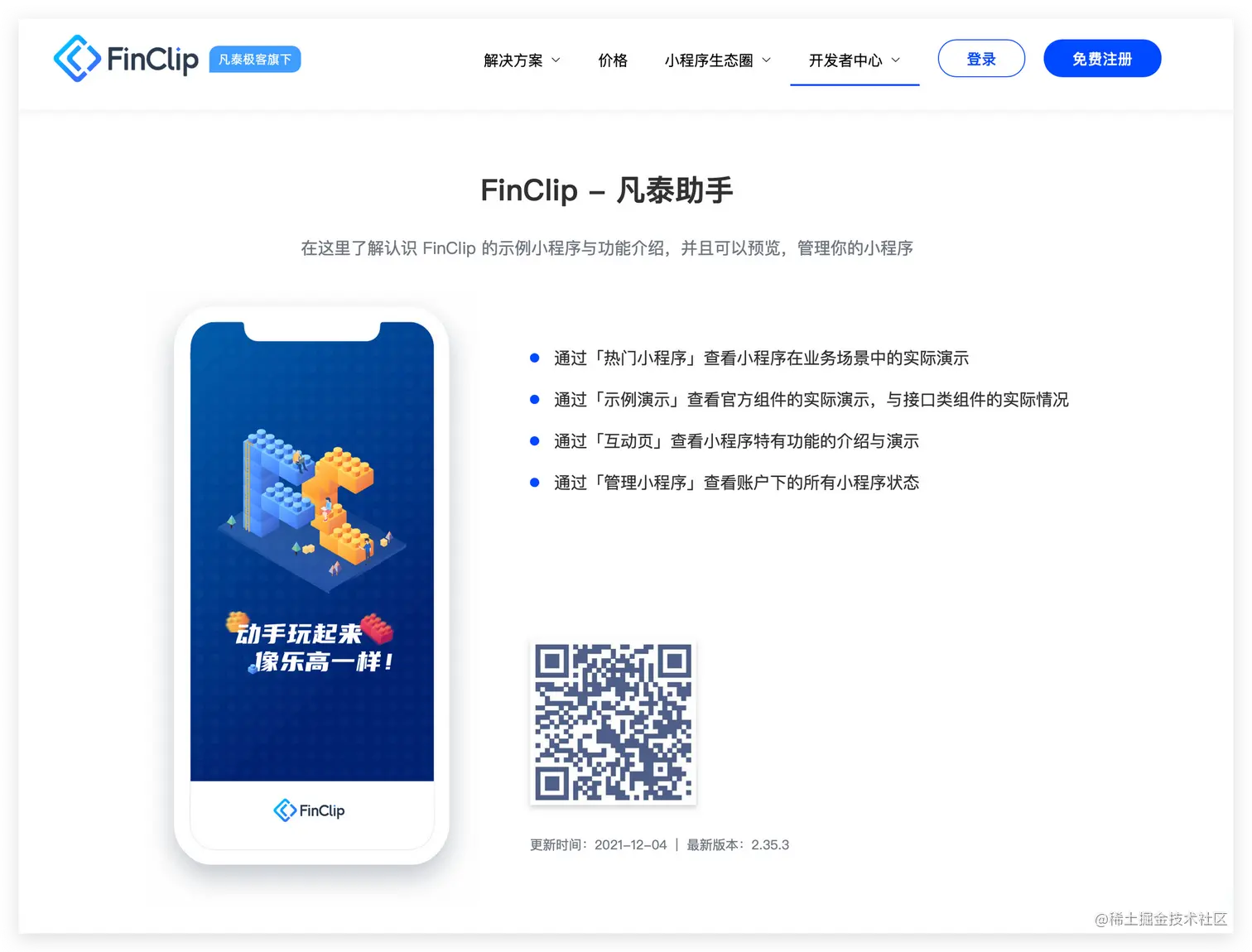 首先我们需要下载 FinClip App,你可以打开官网或者扫描下面的二维码。