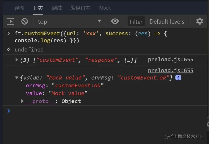 在小程序中运行 ft.customEvent,可以取到 Mock 结果: