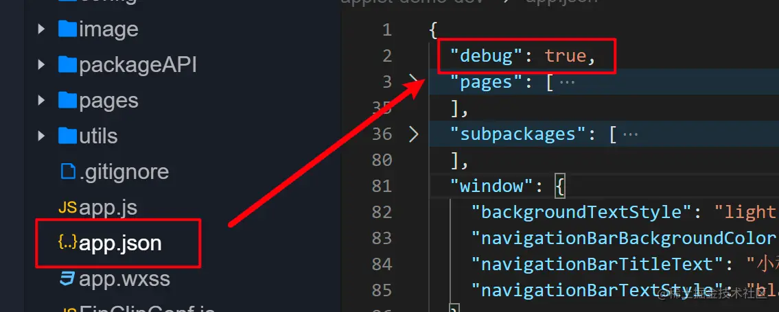 只需要在小程序的 app.json 中添加字段: "debug": true 即可