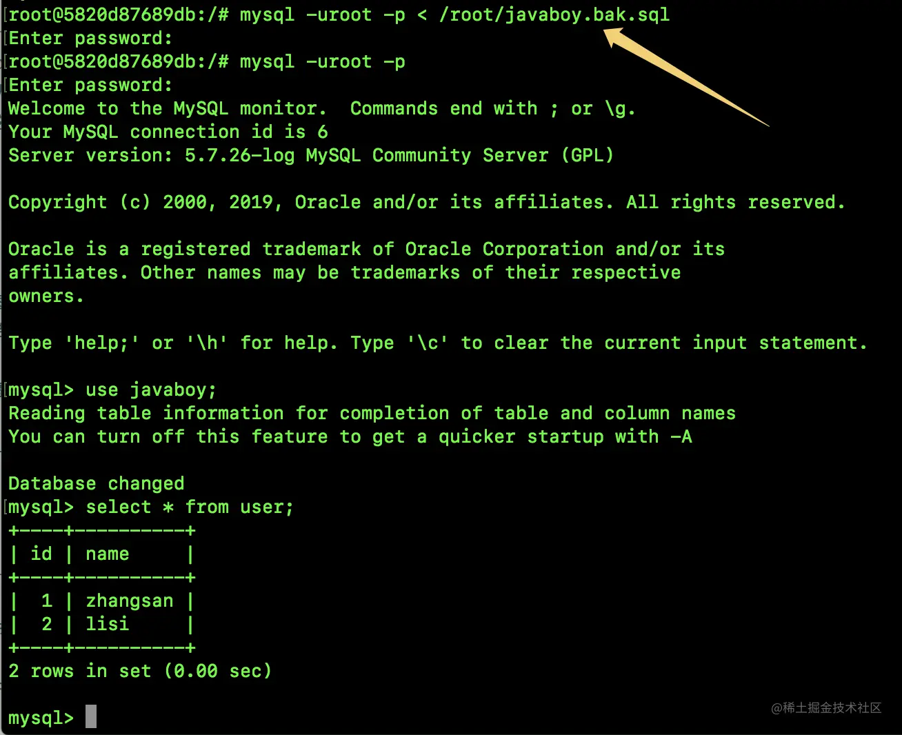 - --database=javaboy 表示恢复 javaboy 这个库。