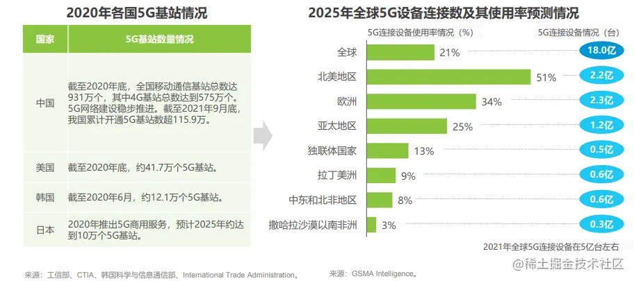 第三,各国发力 5G 基站建设,到 2025 年,全球 5G 连接设备预计达 18 亿,5G 连接设备使用率将达 21%。中国现阶段 5G 基站数量最多,2020 年中国新增 5G 基站超 60 万个,全部已开通 5G 基站超过 71.8 万个,仍是市场增长的主要驱动力。