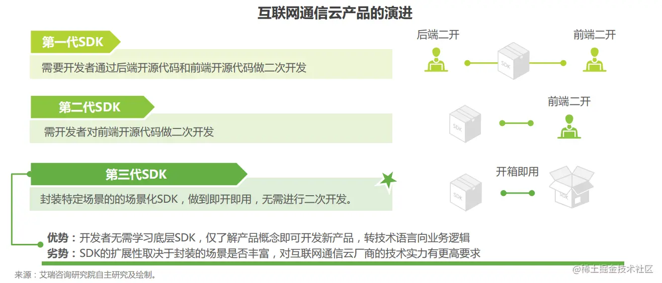 此外,互联网通信云厂商能否尽可能多地基于具体场景,完整封装成产品级场景化 SDK,满足客户对快速集成能力和上线业务的要求,将成为新竞争点。