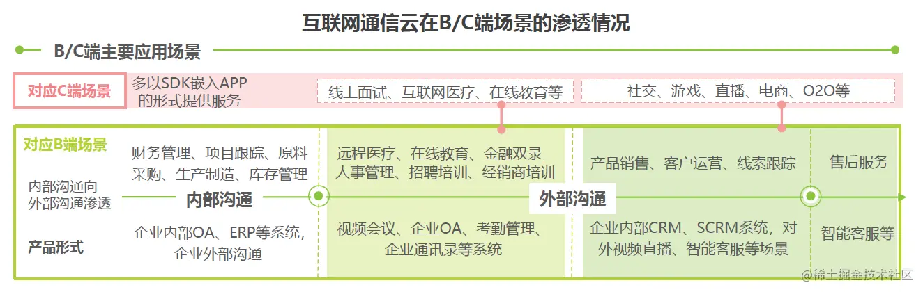 (互联网通信云在 B/C 端场景的渗透情况)