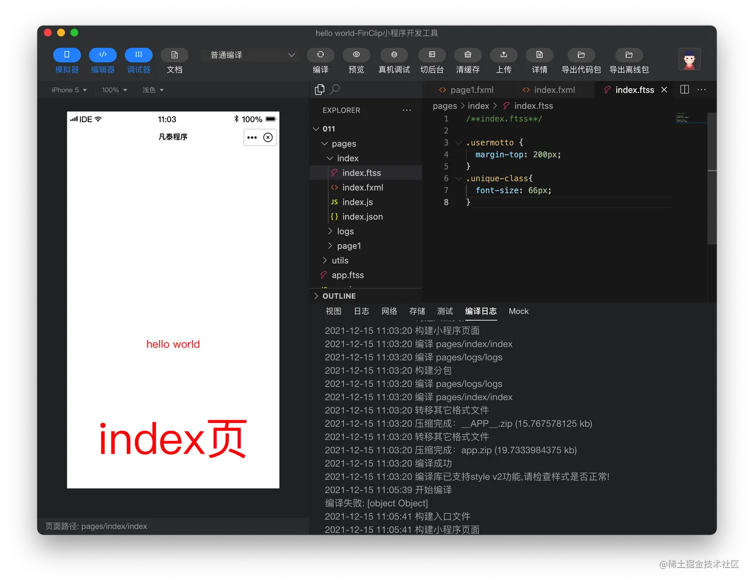 本期教程讲解了基于 FinClip IDE,对小程序的样式文件进行编写与调试的过程。