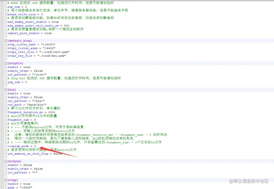 首先我们讲录像的问题,这个问题目前没有办法解决。新内核产生录像的机制是只要开启播放,就会生成ts文件,在平台里面就会展示录像文件,默认一个小时删除一次,但是有时候删除的速度没有写入速度快,就会导致占用了空间。目前只能最大可能地减小这个文件就是在sms\mediaserver\tsingsee.json里面设置cleanup_mode=2,这样的话就会实时删除:
