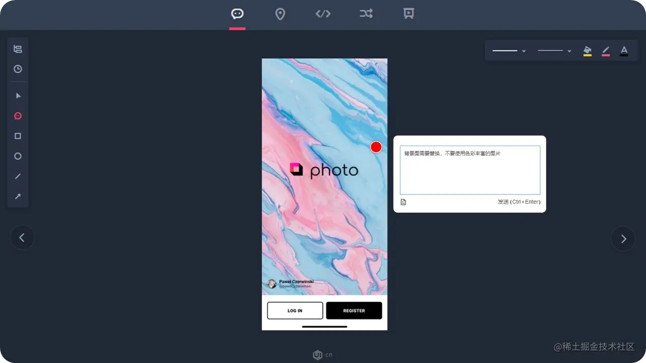 双击画板进入单页模式,就可以对原型稿进行评审、定稿,最终交付开发,这一点对团队非常实用;