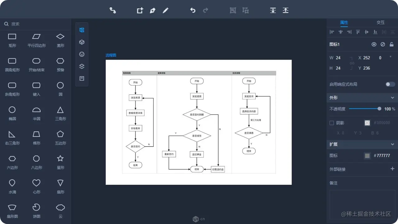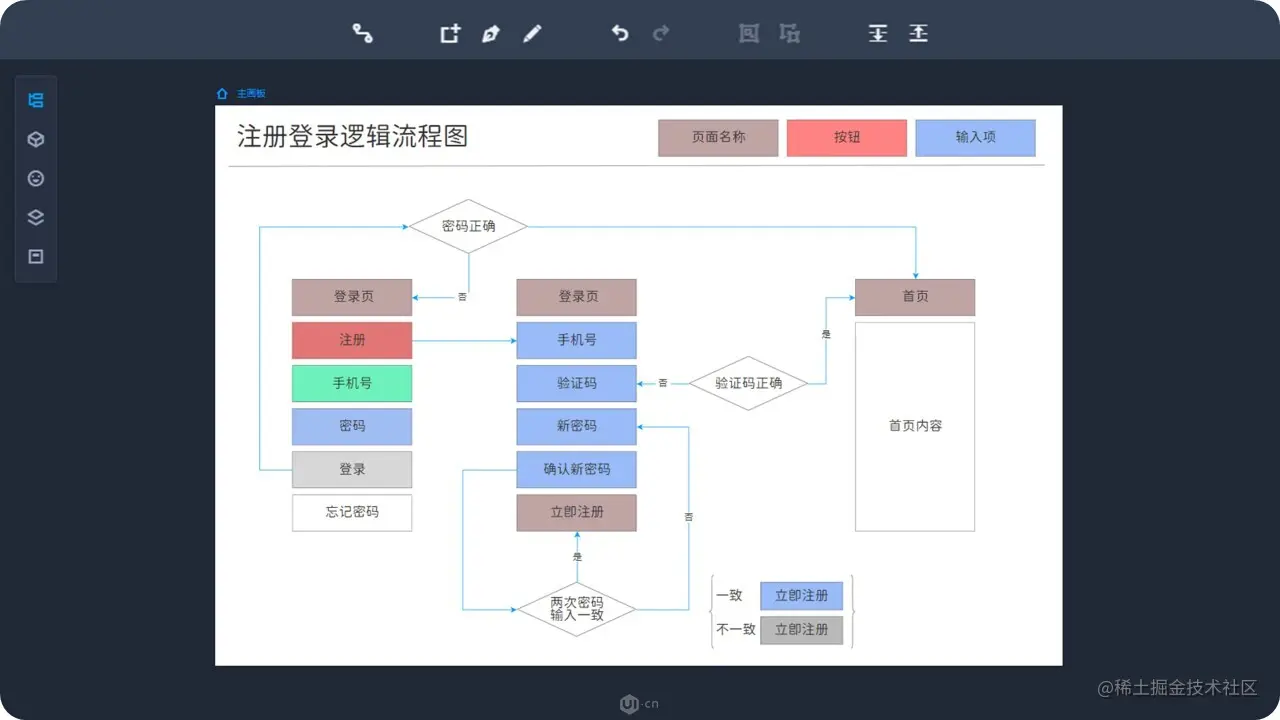 而摹客RP内置“流程图模式”,能够直接在原型工具中绘制流程图,操作便捷;
