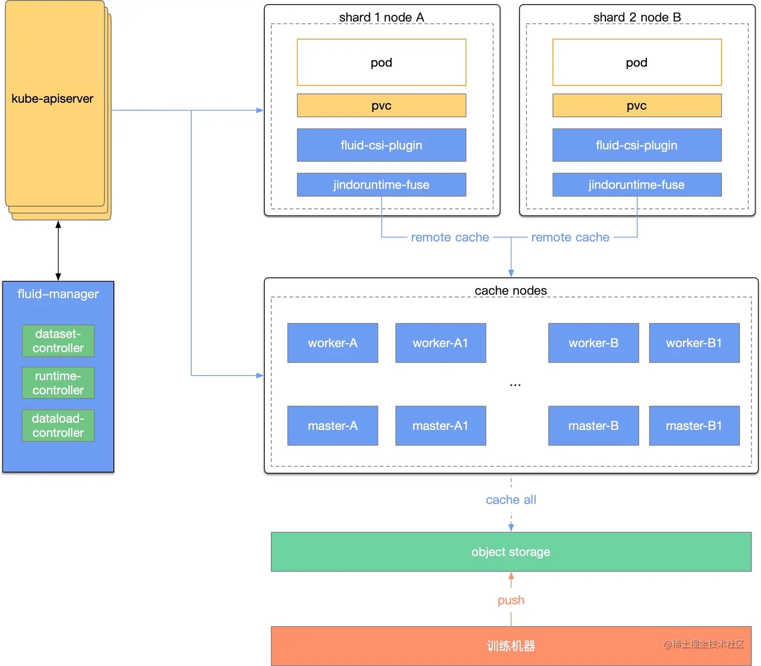 Fluid 提供元数据和数据分布式分层缓存,以及高效文件检索功能。