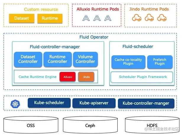 Fluid 是一个开源的 Kubernetes 原生的分布式数据集编排和加速引擎,主要服务于云原生场景下的数据密集型应用,例如大数据应用、AI应用等。通过 Kubernetes 服务提供的数据层抽象,可以让数据像流体一样在诸如 HDFS、OSS、Ceph 等存储源和 Kubernetes 上层云原生应用计算之间灵活高效地移动、复制、驱逐、转换和管理。而具体数据操作对用户透明,用户不必再担心访问远端数据的效率、管理数据源的便捷性,以及如何帮助 Kuberntes 做出运维调度决策等问题。