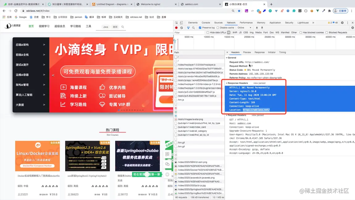 下面这一个就是我们一个测试的配置,用户访问我们这个域名之后,我们进行跳转到小滴课堂的官网。