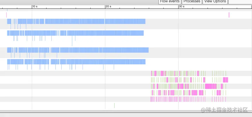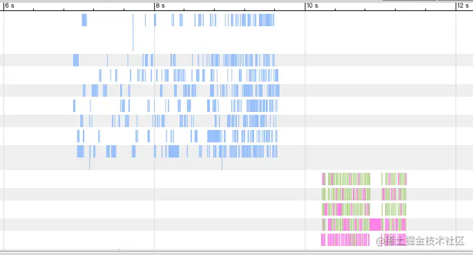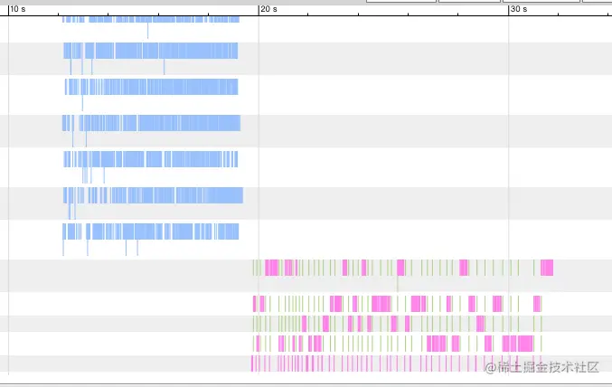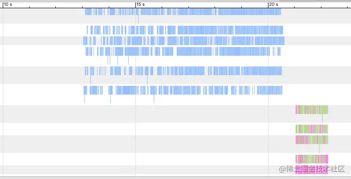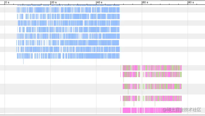 我们看到,读线程读操作已经比较稀疏了,应该是线程读的数据之间有依赖关系,导致不能完全并行化,已经不能通过提升线程数压缩读过程的时间了。