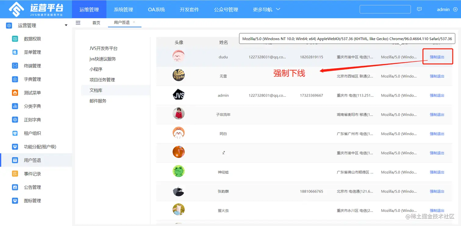 登陆的强制签退下线