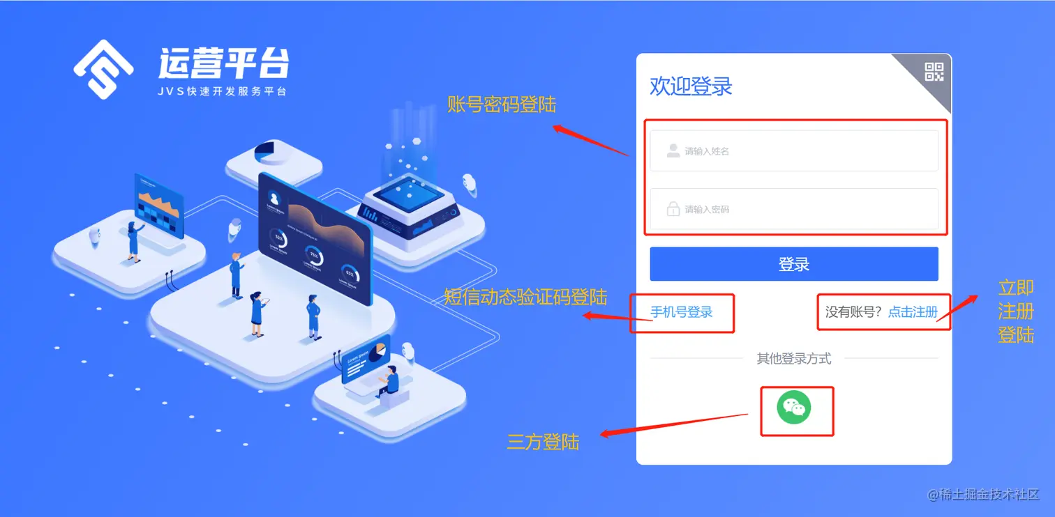 1、多种登陆模式,账号密码、移动端扫码、第三方登陆等