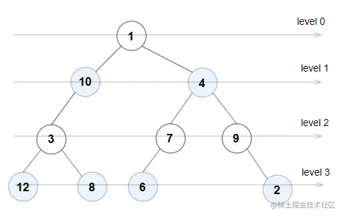 输入: root = [1,10,4,3,null,7,9,12,8,6,null,null,2]