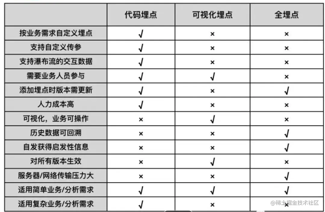 下面这张图是来自网络上更新的三者埋点技术优劣势,大家可以自己选择