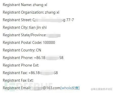 查了他的whois,并没有弄隐私保护,然后爆出了他的名字and手机号and邮箱,跟我被套路的时候,转账的手机号和名字一样唉….目测就是这货了