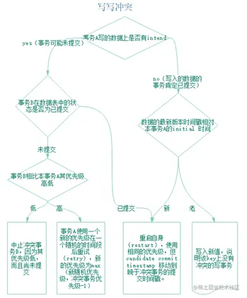 每当操作遇到key的Write Intent时,它会尝试“解析”它,其结果取决于Write Intent的事务记录: