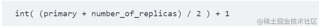 - Consistency:通常来说,在进行写操作之前primary需要检查一下是否有大多数节点是有效的,这样可以保证这个写不会出问题,比如你不会写到一个网络有问题的节点等。通常我们这里所说的大多数是通过这个算式来计算的: