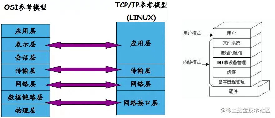 这五句话中,我们可以感受到抽象的层次,抽象层次越高,细节越少,普适性越强。再比如下图中关于网络模型的抽象,关于操作系统内核的抽象,我们可以明显的看到不同层次的抽象,就是过滤不同的信息,最终留下来的信息才是当前抽象层次所需要的信息。从系统设计实现上来说,抽象层次越高,越接近设计,越远离实现,同时抽象的模型越不受细节的羁绊,稳定性越高,普适性越强,可重用性就越高。