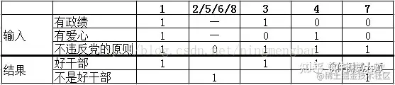 简化依据:若表中输出结果存在相同,且其输入条件存在极相似关系,则可合并简化