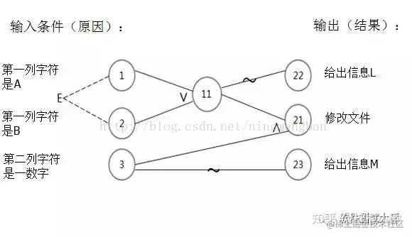 因果图是用图解的方法表示输入的各种组合关系,依据因果图写出判定表,从而设计相应的测试用例。