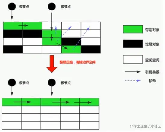 - 移动对象的同时,如果对象被其他对象引用,则还需要调整引用的地址。