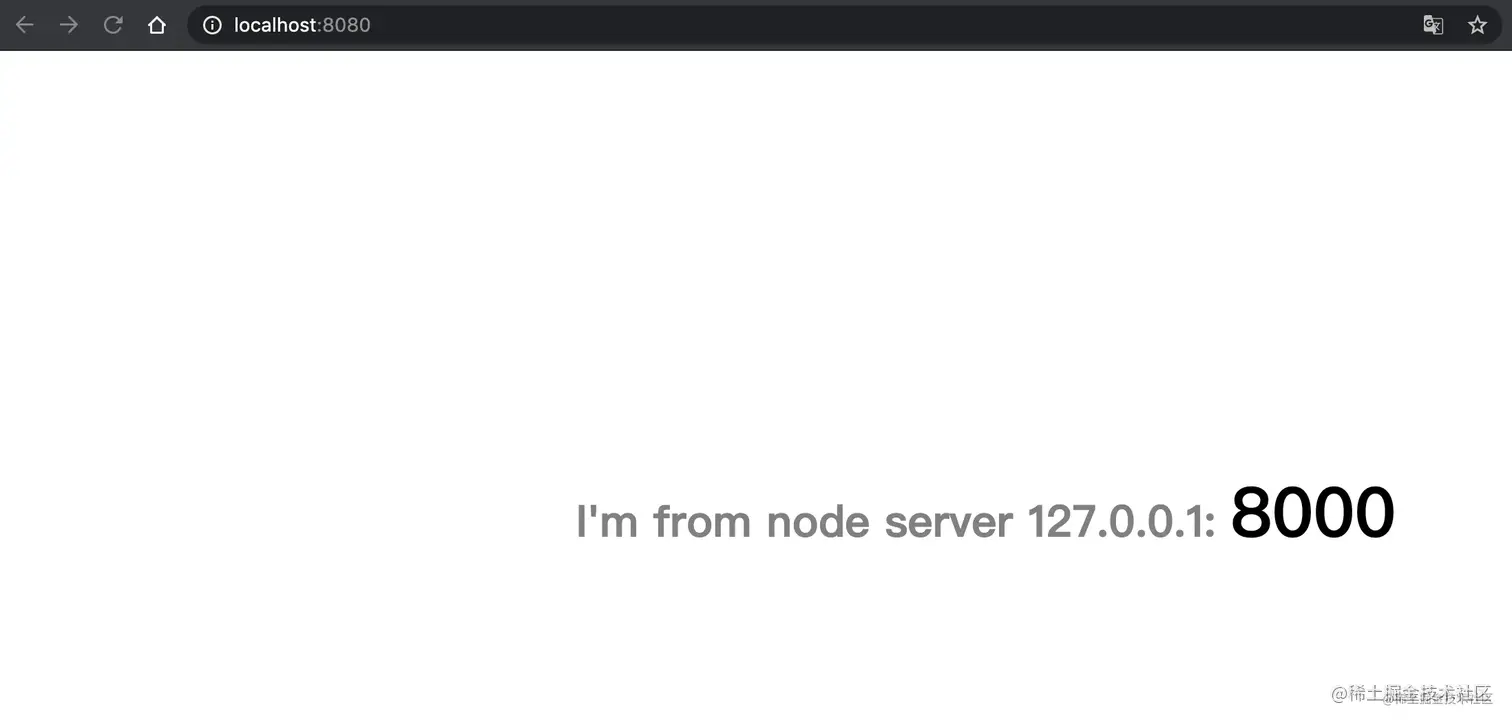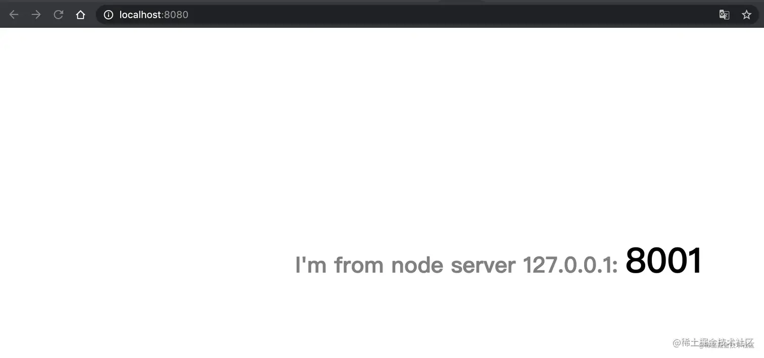 8000和8001是我本地用 Node.js 起的两个服务,负载均衡成功后可以看到访问 localhost:8080 有时会访问到8000端口的页面,有时会访问到8001端口的页面。