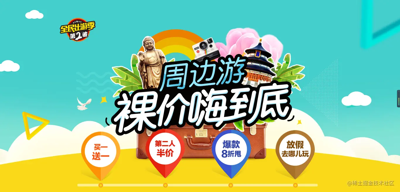 布局分析:1结构:一张背景图片 三片云彩 四个箭头图标 中间一张文字图片