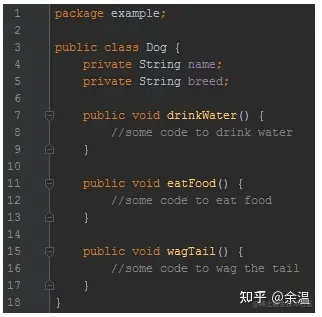 将类视为一种对象的蓝图。一个类通常由一个名称、一组属性和一组操作组成。例如,在Java中,一个非常简单的狗类看起来像这样: