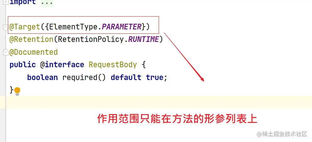 查看源码可知:作用范围只能在方法的参数列表上