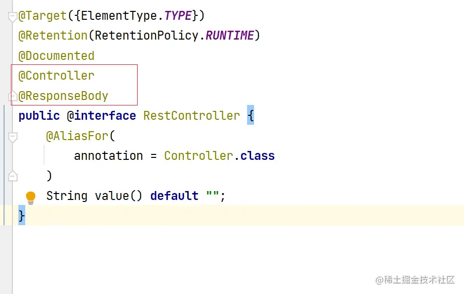查看@RestController的源码@RestController=@Controller+@ResponseBody并且@RestController的作用范围是在类上
