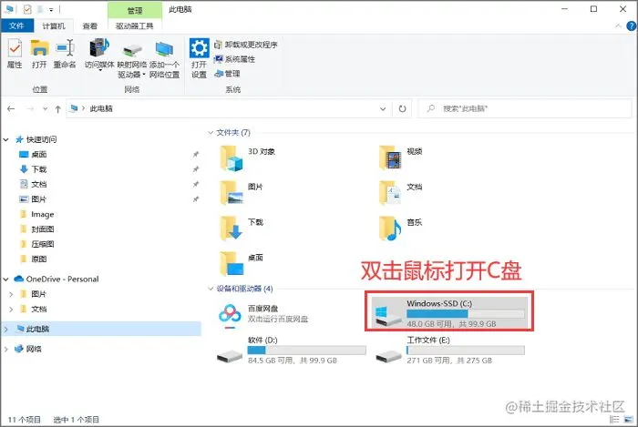 - 在此电脑中双击进入“本地磁盘(C:)”;