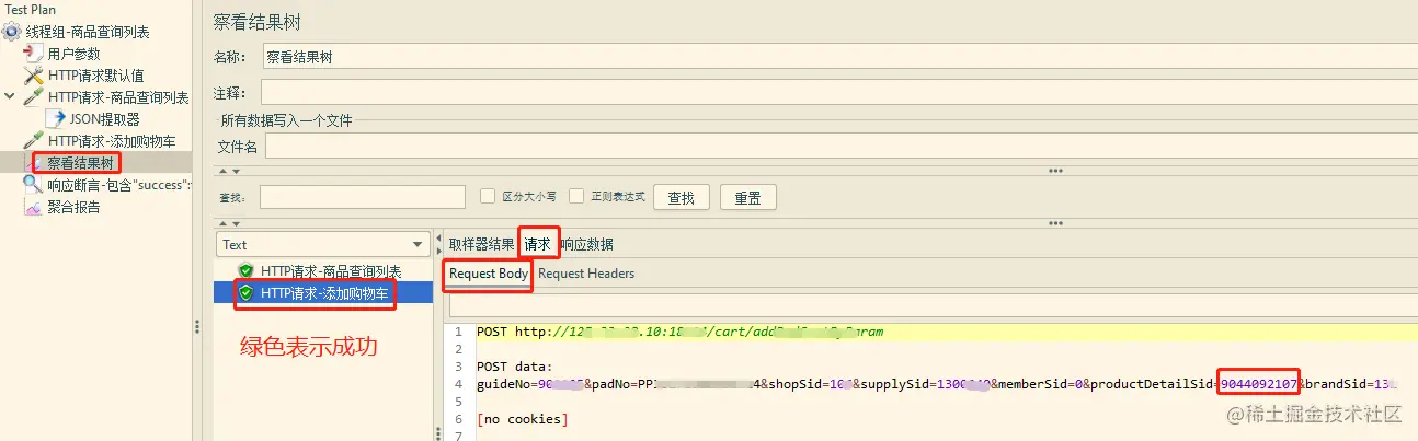两个接口串行请求,前一个接口的返回结果有后一个接口的请求参数,选中第一个接口,鼠标右键->添加->后置处理器->JSON提取器