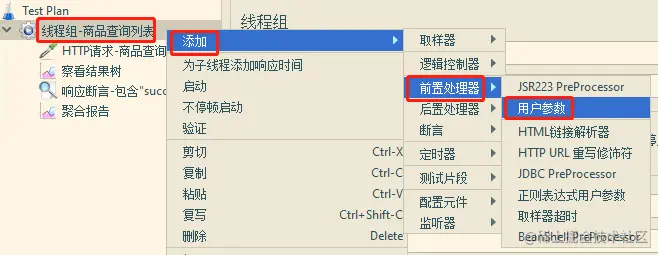 主要配置一些常量参数,鼠标右键->添加->前置处理器->用户参数