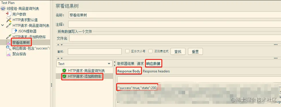 如果接口返回结果和断言配置的数据不吻合,则察看结果树将会显示红色,表示失败。
