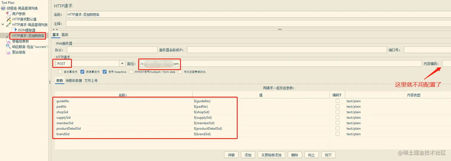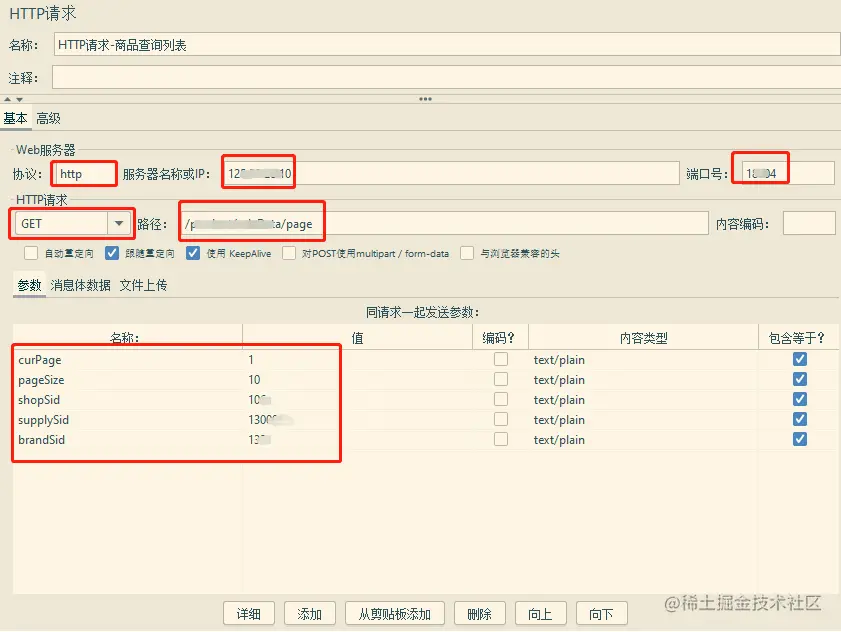 配置请求接口的信息,和普通接口测试配置差不多,鼠标右键->添加->取样器->HTTP 请求