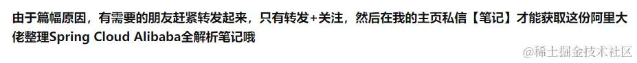 以上这些Spring Cloud Alibaba中的技术点都是我从阿里大佬的一份Spring Cloud Alibaba全解析笔记中CV出来的,这份笔记主要讲解了SpringCloudAlibaba技术栈中的Nacos、Sentinel、RocketMQ、Seata、SMS、Dubbo SpringCloud组件,为了技术栈中完整,又加入了SpringCloud的Gateway和Slueth。全面覆盖微服务中各种问题的解决方案,以企业案例为驱动讲解各个解决方案,真的非常适合当下想学习微服务的朋友,其他的先不说,先看看小部分内容截图就知道这份笔记有多香了,