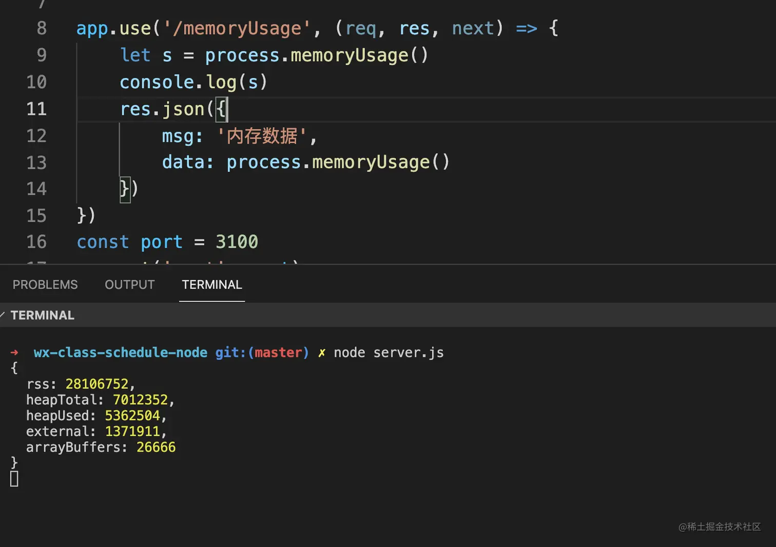 app.get('/memoryUsage', (req, res, next) => {