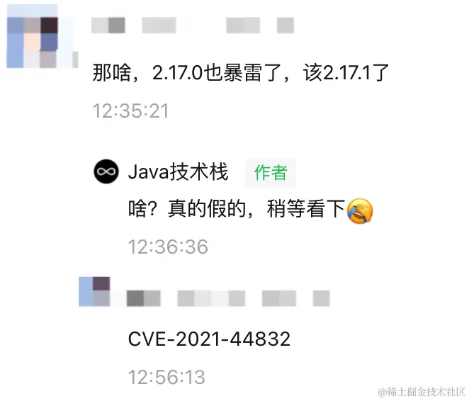 就在昨天,栈长打开公众号,在《团灭!Log4j 1.x 也爆雷了。。。速速弃用!!》一文中,有小伙伴给栈长留言: