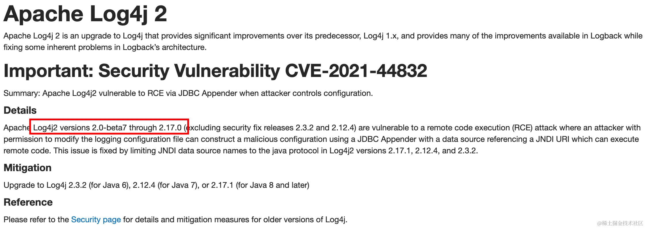 | 影响版本 | Log4j <= 2.17.0 |