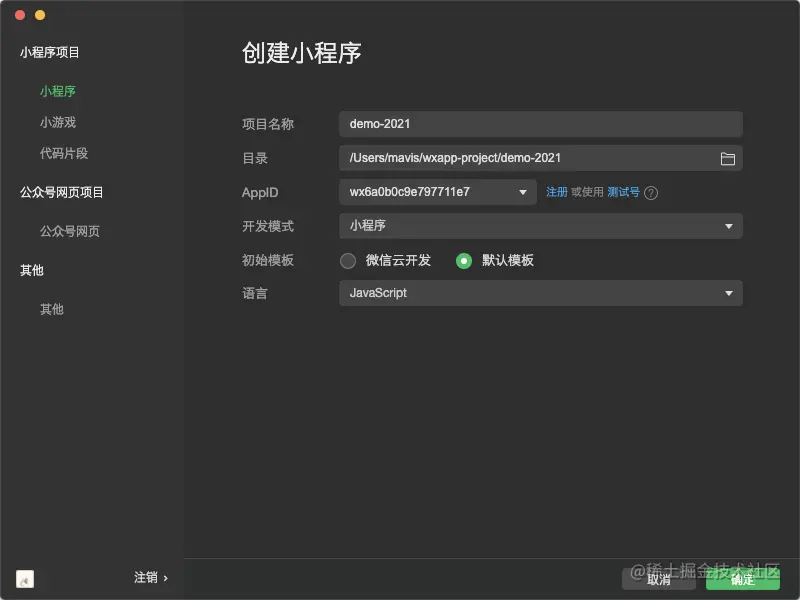 新建/导入小程序