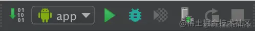 Debug App有两种途径,第一种是直接点击下图运行按钮右侧的小虫状图标,运行并调试当前Project,这个我想大家都知道。