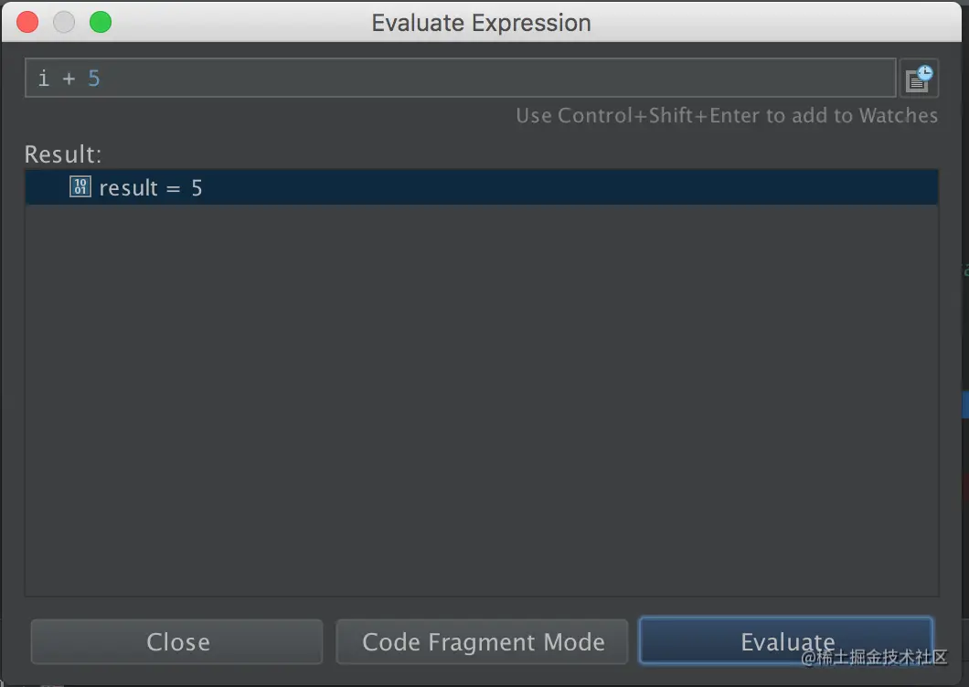 在断点处,如果有变量对象,系统提供了表达式求值功能,针对Variables视图中的变量对象,我们可以输入任何计算语句,实时查看表达式计算结果。具体操作为,右键Variables视图中的变量对象,选择Evaluate Expression,弹出表达式窗口,输入任何你想要的计算语句,点击Evaluate计算按钮,即可显示Result结果: