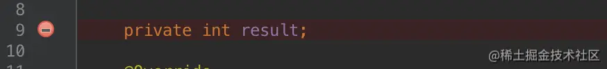 通常我们会对方法里的代码添加断点调试,很少对方法本身调试。其实,如果只是为了看到方法的参数和返回结果,我们可以在定义方法的第一行打断点,直接对方法本身调试,此时断点的展示图标样式也会与众不同: