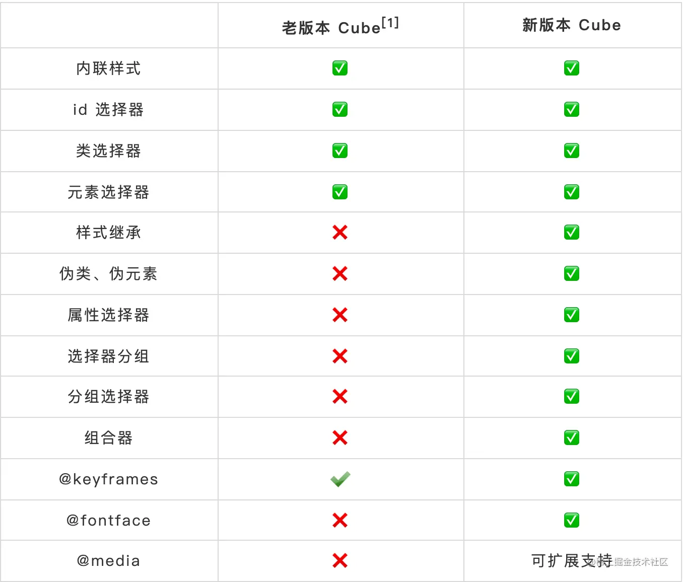 - Cube 模式:在 Native 模式进化而来,支持 CSS 样式表和多种 CSS 选择器。性能良好,支持常用的 CSS 样式和特性(包括样式继承,多种 CSS 选择器);