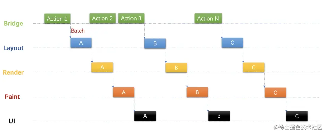 - 并行布局,异步绘制:这里的并行是指 JS 执行,Layout 布局 以及 Render 三者完全并行处理。由于 Layout 和 Render,Paint 等不在一个线程,因此是异步绘制;