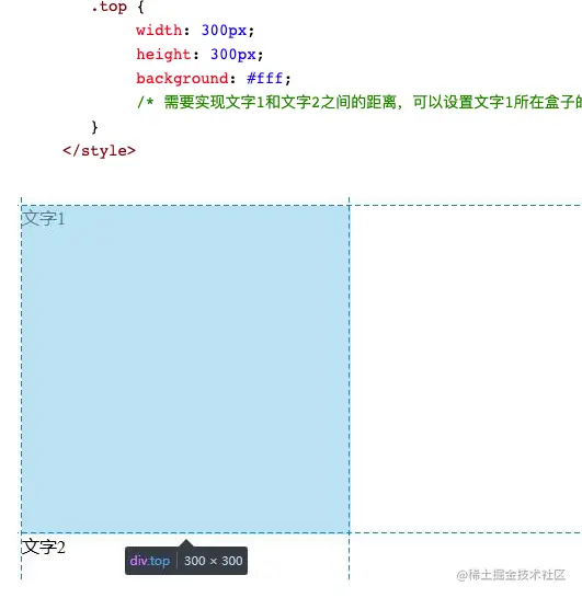 3.高度剩余法:有两个div,里面各有文字1和文字2,如何实现文字1和文字2的距离,可以使用高度剩余法。