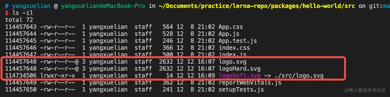 通过linux命令创建一个硬链接logoHard.svg指向源文件logo.svg。