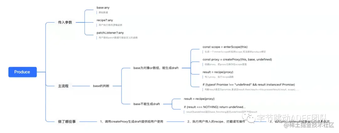 currentState:被操作对象的最初状态draftState: 根据currentState生成的草稿、是currentState的代理、对draftState所有的修改都被记录并用于生成nextState。在此过程中,currentState不受影响nextState: 根据draftState生成的最终状态produce: 用于生成nextState或者producer的函数Producer: 通过produce生成,用于生产nextState,每次执行相同的操作recipe:用于操作draftState的函数