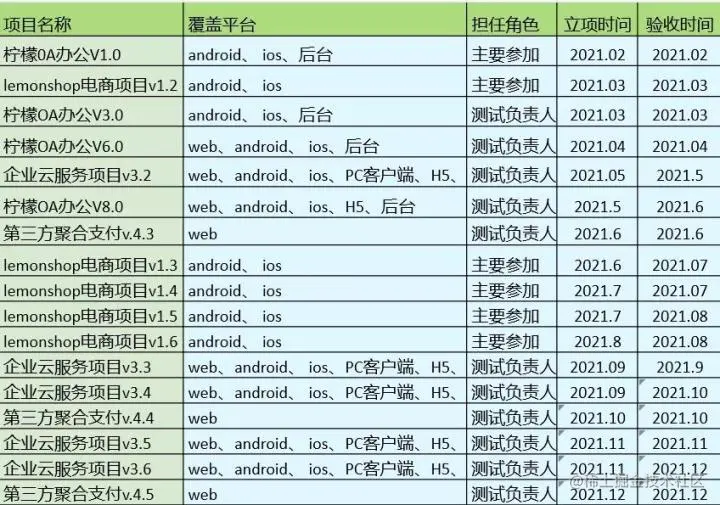首先,罗列你今年总共负责/参与过的项目,展示今年的工作量成果